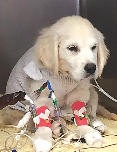 “The boy weighed 10½ pounds and his twin sister weighed 7 pounds,” says Dugat. “Since Diva, the mom, didn’t produce enough milk, we have been bottlefeeding the babies three times a day here at the house. They won’t be weaned until they are 12 weeks old.”