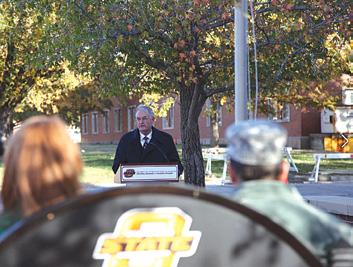 On Sept. 12, 2015, OSU President Burns Hargis joined Dr. Jean Sander, dean of the Center for Veterinary Health Sciences, and donor Vicki Palmer to dedicate the new Academic Center Faculty Office Building.