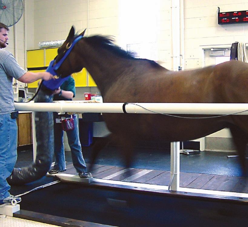 The Center for Veterinary Health Sciences uses an equine treadmill for research and diagnosing problems in non-productive racehorses.