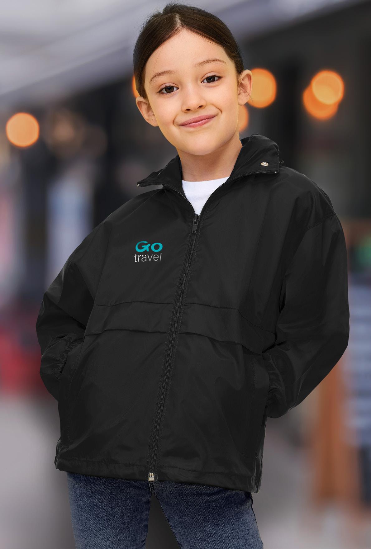 • Lightweight unlined children’s windbreaker manufactured from 210T polyester and is showerproof and wind-resistant