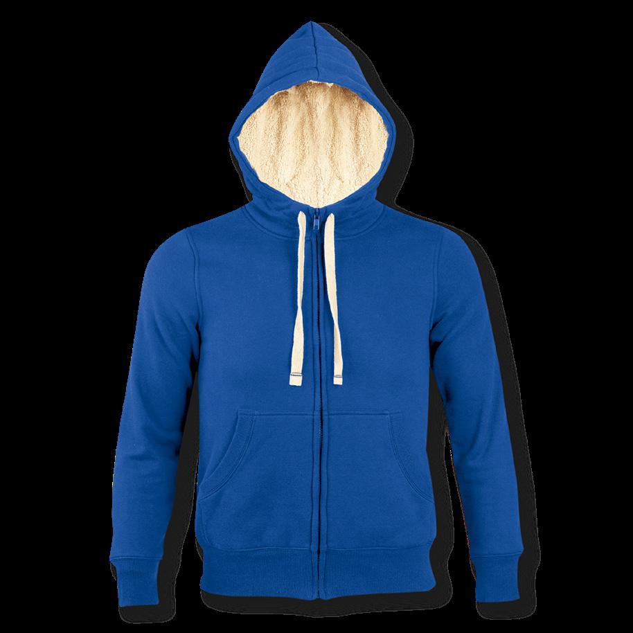 • Stylish 280gsm, unisex adult sweatshirt with a full zippered front and a soft sherpa lining. It is manufactured from an 80/20 blend of ring-spun cotton and polyester
