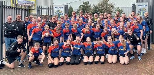 Het publiek, wat in grote getale naar het sportcomplex was gekomen, kon eerst de jeugd van beide verenigingen aanmoedigen bij een sponsorloop.
