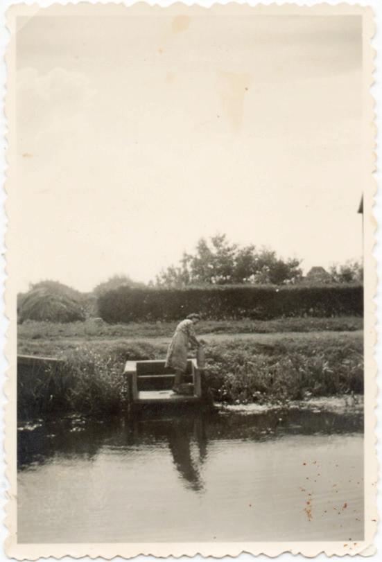 De feart, op ’e foto wêr’t it bjinstap oan stiet, is it Klidzerjucht. It Klidzerak is tagelyk mei de Damslûs en de Wide Wispel yn it midden fan de fyftiger jierren tichtsmiten. Hjoed de dei soe dat, tink ik, net mear barre om’t hja no wol mear wetter foar de plezierfeart brûke kin, wat spitigernôch doe net nedich wie. It Klidzerak, dat doedestiids groeven is yn it kader fan ’e wurkferskaffing, is hûndert jier letter ek yn it kader fan ’e wurkferskaffing wer tichtsmiten om’t yn ’e fyftiger jierren ek ekonomysk tocht waard en de measte minsken, sa as by ús thús, wienen bliid mei de feroaringen. Dyken waarden wichtiger dan wetterwegen. Dy feroaring hat der wol foar soarge dat fan it ferline neat werom komme sil. Fan dêr dat dizze foto foar my ek in hiele grutte betsjutting hat. It Klidzerak is der net mear, de turfbult bestiet net mear, it bjinstap stiet dêr net mear en ús mem libbet ek net mear.
