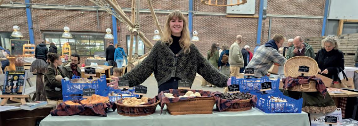 tele kwekerij. Met haar eigen kweekzakken laat ze bezoekers zien hoe je thuis het wonderlijke groeiproces van paddenstoelen kunt beleven.