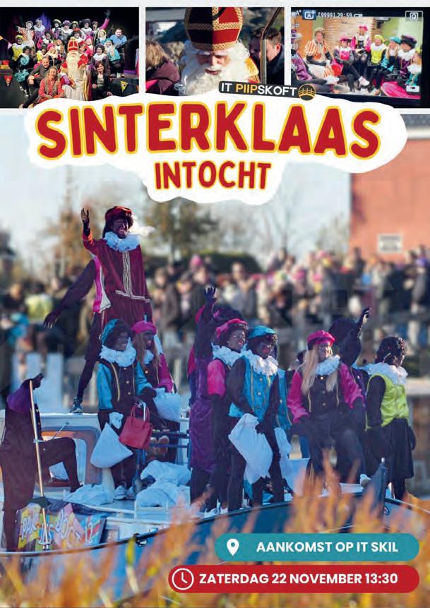 cial media kanalen in de gaten voor de laatste informatie omtrent de intocht en het feest. Daar zal ook de kleurplaat weer verschijnen voor de kleurplatenactie van dit jaar. Sinterklaas heeft ons al laten weten erg veel zin te hebben om jullie allen weer in Stiens te ontmoeten. Zien we jou ook langs de route of tijdens de show? Trek je mooiste pietenpak aan. Onze pieten nemen de pepernoten mee ●