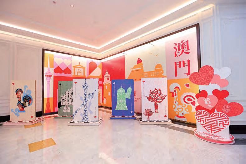 展區三(133-135 號舖):紙雕中的民族記憶 展示用中華傳統 顏色「赤」和「青」為主題色製作而成的 金蓮花廣場、哪吒廟等澳門標誌性地標和體現中國建築 特色的 3D 紙雕作品,表達中華文化的藝術延伸性及包 容性,並通過寓意 “貴人、親情、愛情、事業”的「人生四 喜許願池」互動藝術裝置,表達人生四喜在智 慧上的 傳承。