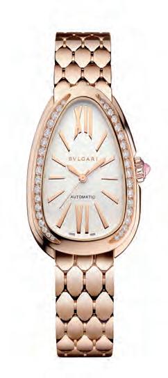 BVLGARI 以新作開拓製錶藝術新境界,充份體現其作為珠寶 大師的基因。透過透明錶底,可盡覽飾有七片蛇鱗的擺陀,散 發猶如靈蛇皮膚的閃爍光芒,展現機芯背後的非凡巧思,向 BVLGARI 充滿豐富內涵的製錶傳統致敬,同時彰顯其獨特的 優雅風格。