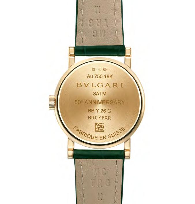 26 毫米黃金錶殼。「BVLGARI ROMA」特別鐫刻錶圈。錶底刻有「50 週年紀念」專屬雕刻。