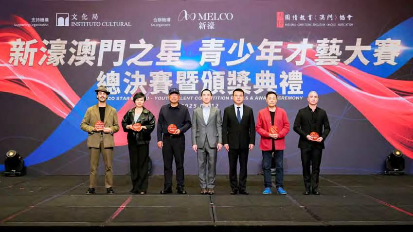 新濠一直 致力推動本澳創意及文化的蓬勃發展,助力培 育 演藝及創意產業人才。今天,入圍的年 輕參賽者們得以向由 世界知名演藝娛樂大師組成的評審團展現才藝,此難能可 貴的體驗充分印證新濠對本地青年於演藝及創意產業發展 的支持。