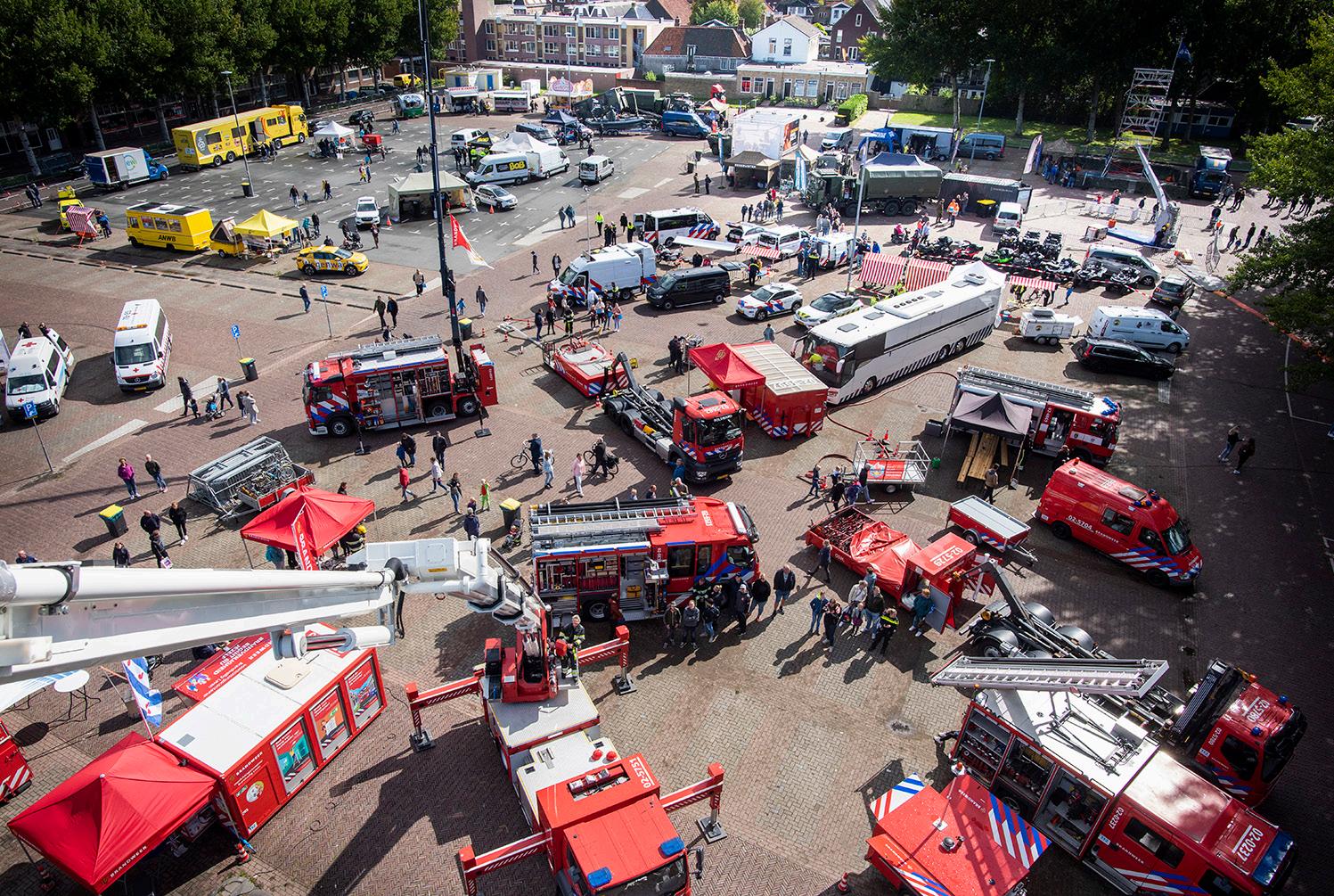 Het is een dag vol loeiende sirenes, spectaculaire demo’s en blinkend materieel. Van KNRM tot Rijkswaterstaat, van marine tot ambulance: in de veemarkthal en op het Martiniplein wordt elk stukje van de hulpverlening uitvoerig belicht. Op zo’n dag kan de brandweer natuurlijk niet ontbreken. Zo kan het