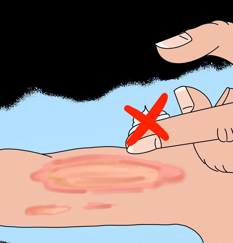 Creams, ointments, balms, toothpaste and other such products will worsen the injury. Also refrain from using betadine or iodine.