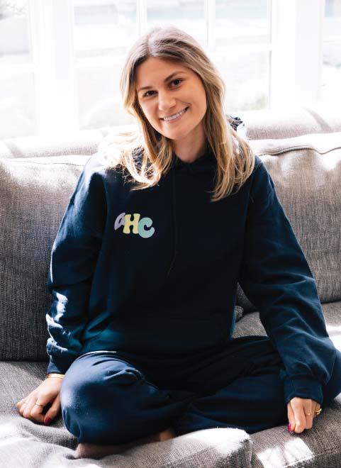 Every day looks different. Some days are spent at factories, sourcing fabrics for our next launch; other days, I’m building out content calendars; many days, I’m knee-deep in Canva, draft ing newsletters and marketing materials. But no matter what, all days share the same mission: to use the comfort of a hoodie to help others feel a little less alone. R
