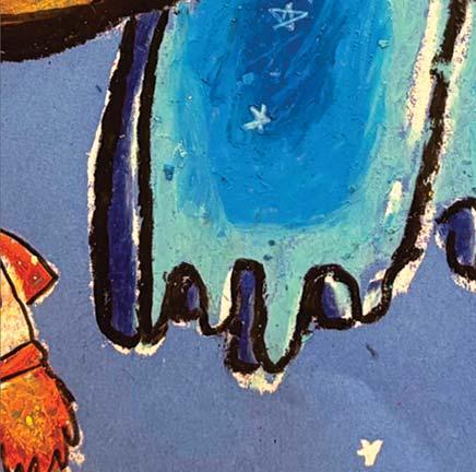“The assignment was to create a work of street art on an issue that is important to me. I chose the word ‘Hope’ because I hope for the world to become a better place. The idea I was trying to express was to clean up all the trash in space, which is a huge problem. I did gradients with different shades of blue, which remind me of space, and added a drop shadow to represent space’s depth and how big it is.