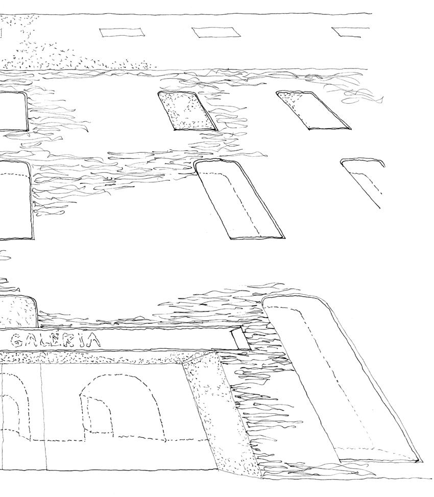 13 Fasáda / Prológ 21 Vstupná sieň / Severné krídlo Vodných kasární 33 Nádvorie 45 Chodba / Východné a západné krídlo Vodných kasární 55 Premostenie 69 Átrium 77 Námestie / Travertínová záhrada 89 … a výstavné priestory