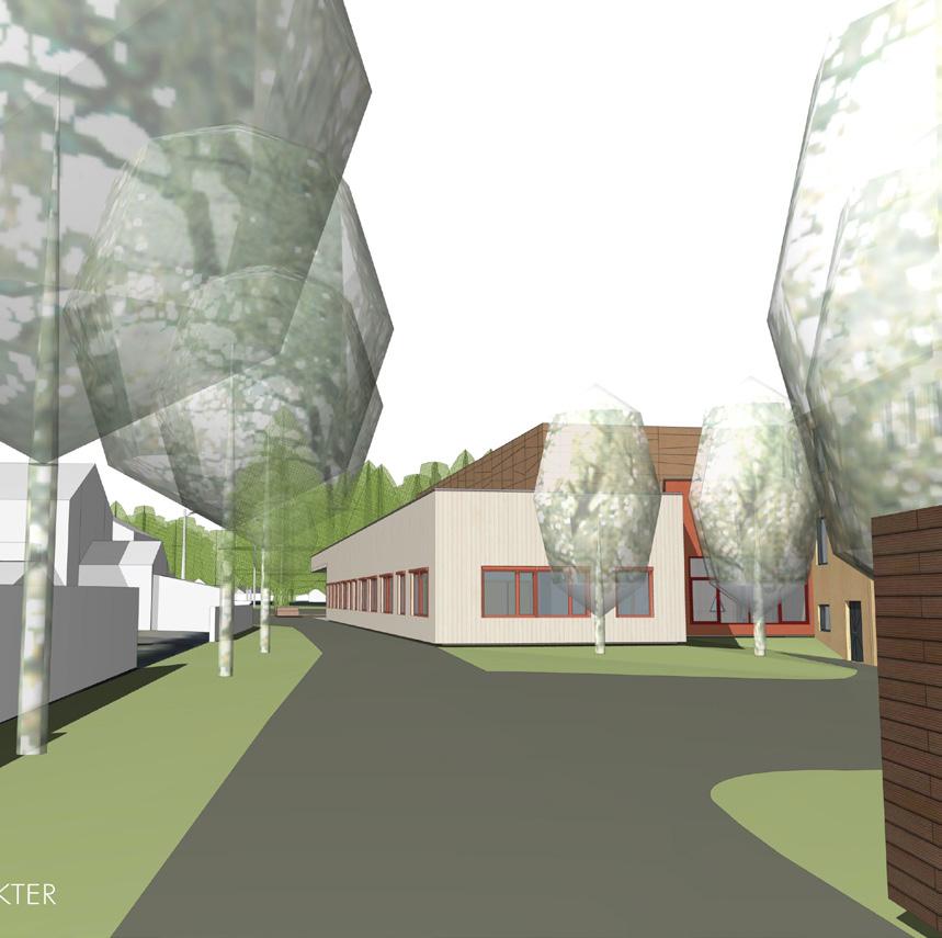 Nå fortsetter prosjektet med en neste etappe, en etappe som fokuserer på området mot parkeringen og nye lagerrom som skal stå ferdige til sommeren.