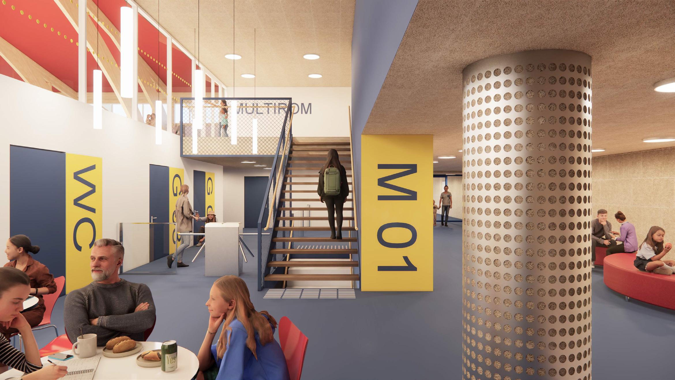 For å modernisere midtbygningen, men samtidig beholde opprinnelsesarkitekturen fra 1900-tallet har den gamle delen fått nye overflater samtidig som visse deler er gjenbrukt. Man har bevart konstruksjonen og det gamle tregulvet, men satset på ny isolasjon og å få fram noen synlige bjelker. Man har også bevart den gamle peisen.