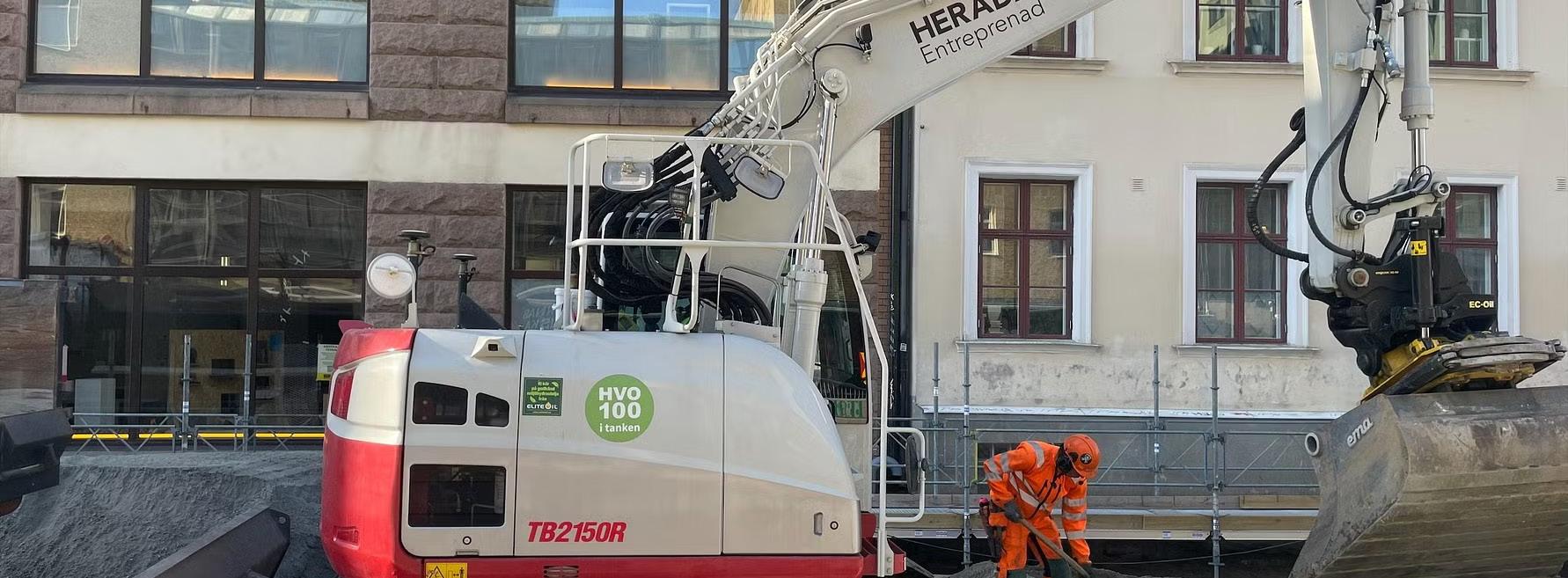 Nu måste alla lastbilar och arbetsmaskiner som används vid byggen för stadsmiljö- och exploateringsförvaltningarna i Göteborg köras på ”biodieseln” HVO100 eller el. Detta krav vid upphandlingar av anläggningsbyggen är ett avgörande steg mot målet om ”utsläpp nära noll 2030”. Fordonens utsläpp av koldioxid minskar med upp till 70 procent och luften blir renare tack vare minskade utsläpp av kvävedioxider och partiklar.