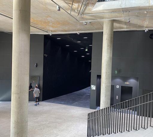 Uudisrakennuksen etuosa on kaksikerroksinen ja taaempi osa viisikerroksinen. Maanpäällisen rakennuksen alapuolella ylemmässä
