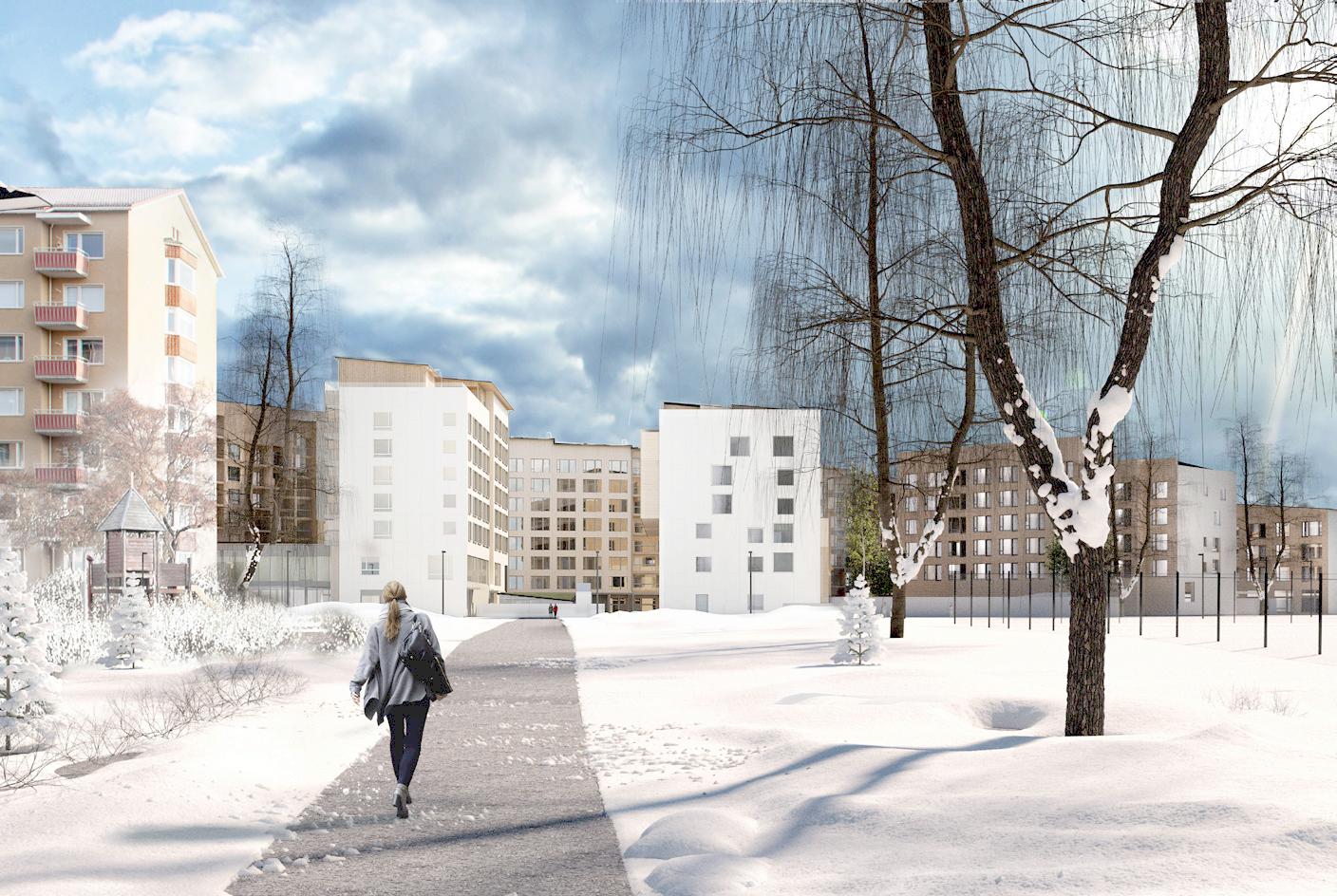 – Kahdeksankerroksiset rakennukset tulevat kahdelle eri tontille, joista pienemmälle tontille tuleva talo lämpenee kaukolämmöllä.