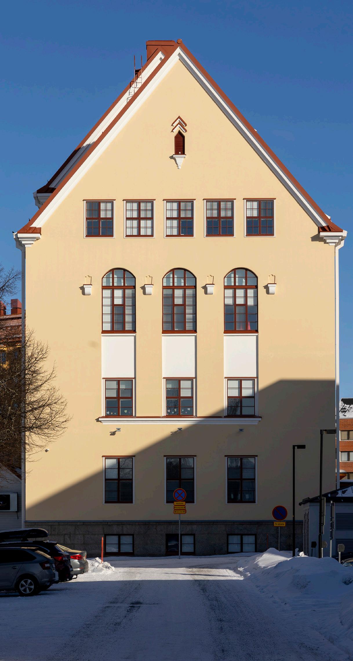 – Olemme pääsuunnittelijan johdolla tehneet peruskorjausten suunnittelun ja toteutuksen kuin suojelurakennuksissa, vaikka rakennuksilla ei ole varsinaista suojelumääräystä. Esimerkiksi julkisivuihin ei ole tehty muutoksia. Sisäpuolella vanhojen rakennusten seinien tapetoinnissa ja puolipaneeliverhouksissa otettiin vanha aika huomioon.