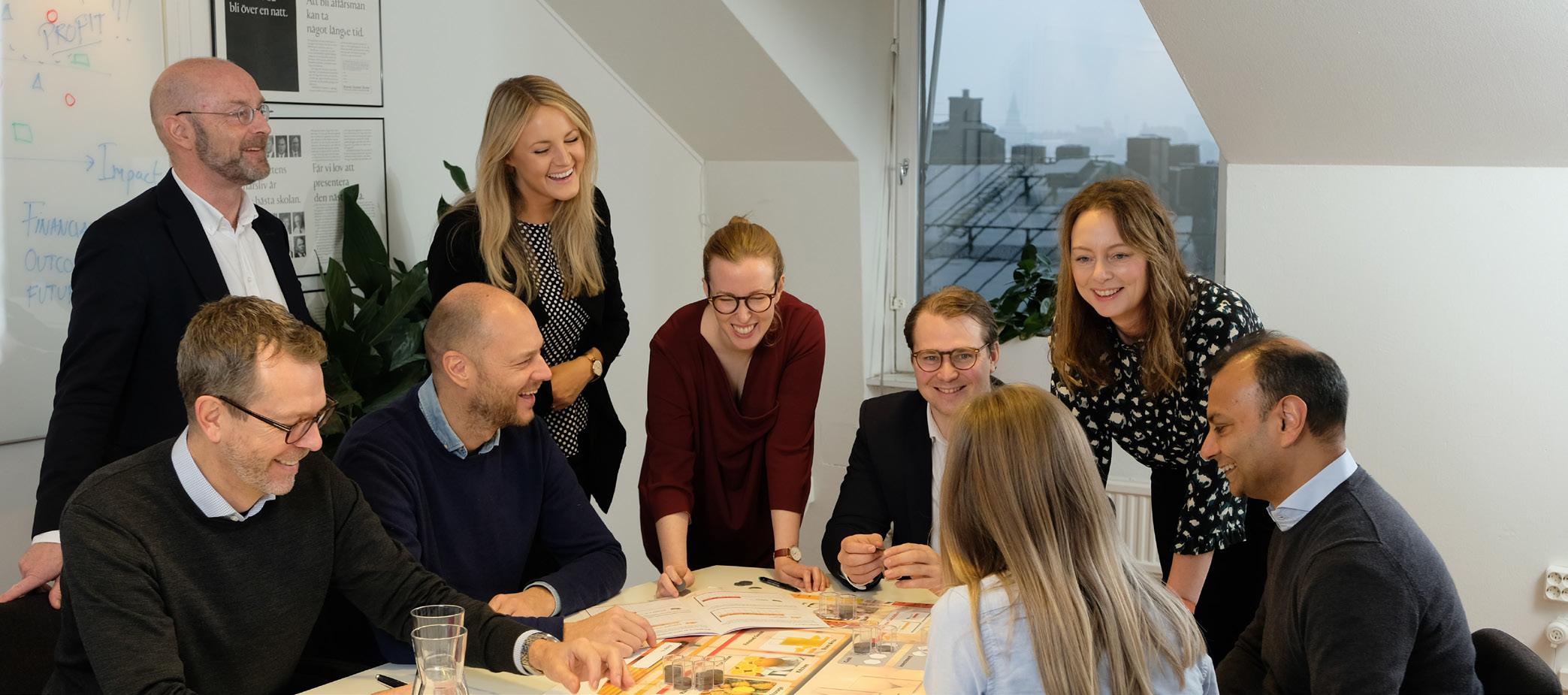förändringstryck som samtidigt ligger på alla ledares ansvar, att prestera i nuvarande affärsmodell och samtidigt driva förän dringar mot morgondagens. Det behövs engagerade ledare i hela organisationen som får testa och träna i en simulerad miljö som speglar varje organisations unika situation. Skräddarsydda simuleringar är A och O för att förbättra implementeringsförmå gan, skapa samsyn och skifta mindset, säger Anna Sandberg.