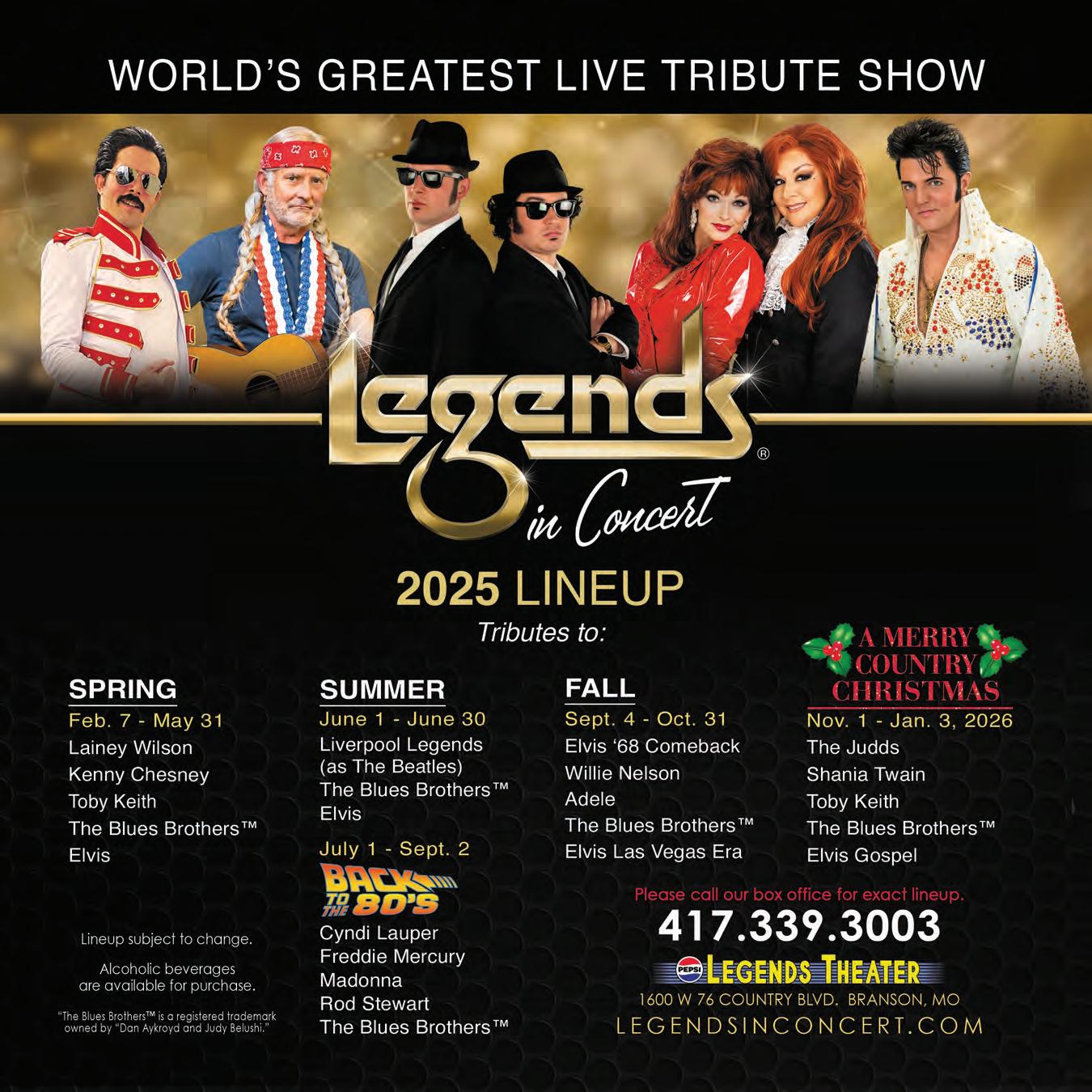 Order your free Branson Vacation Guide or view it online via your favorite electronic device at ExploreBranson.com/ vacation-guide