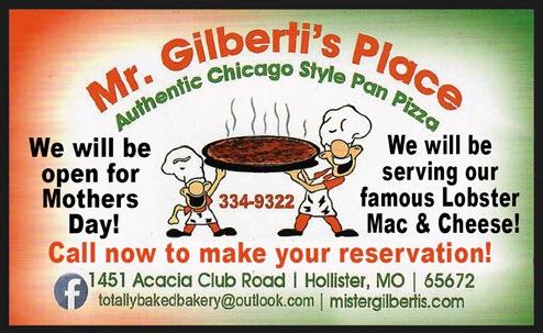 look forward to meeting you! HOOAH! LUXURY 1 & 2 BR APARTMENT HOMES 1-1/2 BATHS, POOL, REC.ROOM 1 BR STARTING @ $615/MO 2 BR STARTING @ $725/MO Furnished Units, Carports & Lakeviews Available CALL 417-546-3334 Shepherd of the Hills Estates www.soheapts.com MR. GILBERTI’S PLACE. Need pasta cook, hostess, and servers. Fun, working atmosphere. Come in and fill out an application. 1451 Acacia Club Rd., Hollister. SHO-ME CLEAN & SHO-ME FLOORING: WANTED – PART-TIME SHOWROOM SALES HELP. Do you have some knowledge of flooring products, or have you installed flooring? Ready to take your experience to another level? Our showroom is the perfect place for you! Inquire at 417-263-1963 for more info. FOR RENT: 1 bedroom, 1 bath condo for rent. Safe & secure location, in Hollister, in 45+ community in unit, W/D included, $650 month, $300 deposit. Call 417-337-3285. FOR SALE POINT LOOKOUT NURSING & REHAB is excited to announce that we are currently hiring