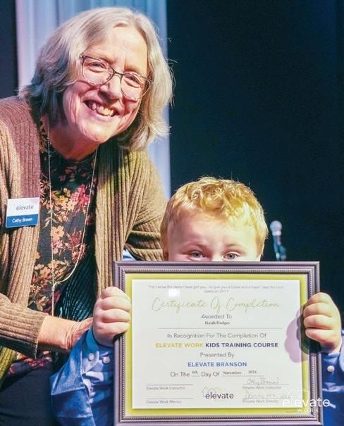 ship with an encouraging community, such as fellow graduates and supportive staff at Elevate Branson. Following Worley’s remarks, Cathy Brown introduced Isaiah, age four, who