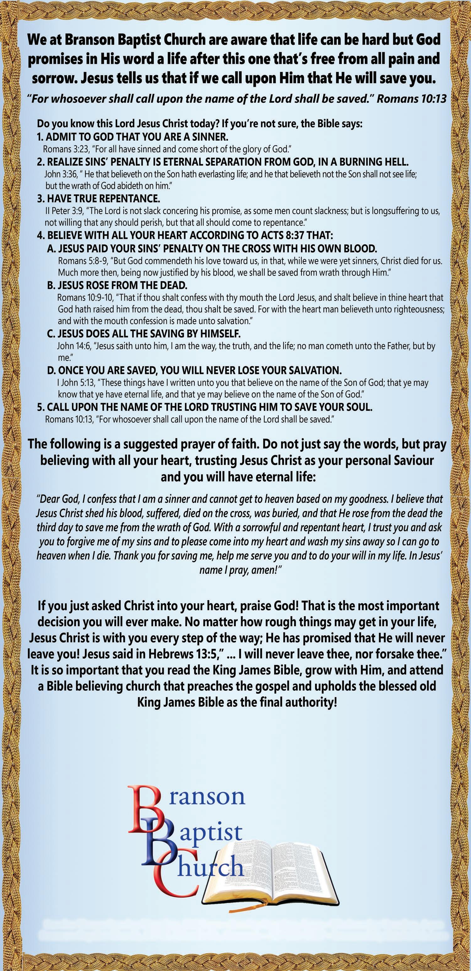 - 2 p.m., First Christian Church, 5 Hilltop Drive Branson 11/15/2024: 12 p.m.5 p.m., Our Lady of the Lake Catholic Church, 202 Vaughn Drive