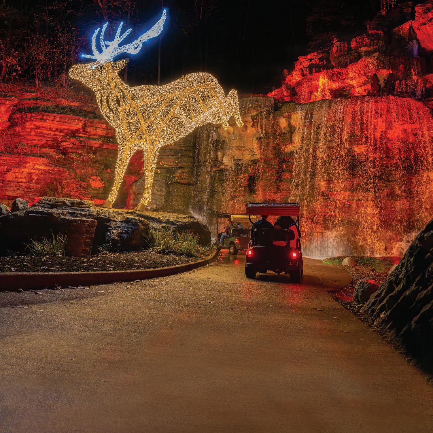 Connect with the great outdoors with the enchanting Nature at Night holiday light tour. Discover the tales of the indigenous people of the Ozarks, the rapid decline and gradual return of North American bison, and how different species work together to create a co-dependent ecosystem all while surrounded by twinkling lights and aweinspiring displays. Become illuminated with inspiration to conserve our natural world today and forever on this one-of-a-kind tour running for a limited time this season. Scan the code to purchase tickets online.
