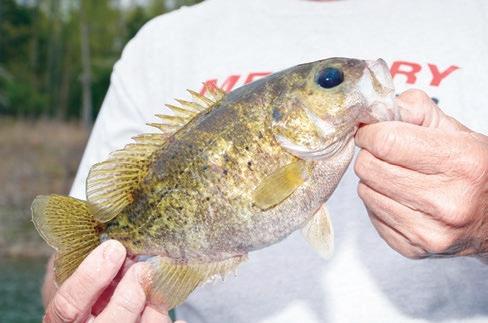 been around large root wads of fallen trees washed into deep water any time of the year, any time of the day. They love a big submerged root wad just as much as a big rock. Something else I’ve noticed about rock bass in the Ozarks, is that they seem to go on feeding binges when a heavy rain muddies the stream and creates a small rise. Sometimes during a rise they move into areas of sand or gravel substrate where they normally wouldn’t be found. Years ago, when there was a slow rise in the river, and murky water coming with it, I would go to some favorite spots and catch lots of rock bass on nightcrawlers, along with bass, green sunfish and suckers.
