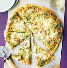 2. Spread pesto over crust. Sprinkle with mushrooms, mozzarella cheese and remaining Parmesan cheese. Bake pizza until golden