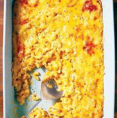 3. Drain macaroni; toss with cheddar cheese. Transfer to a greased 3-qt. baking dish. Stir in cream sauce.