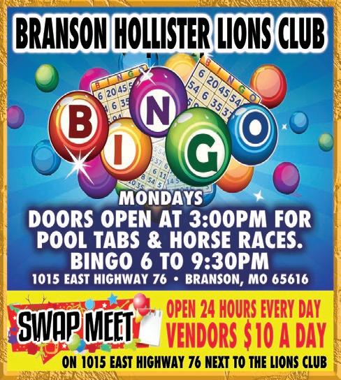 Registration is available online at www.bransonparksandrecreation.com/ catalog or in person at the Branson RecPlex. For more information, contact Branson Parks & Recreation at 417335-2368.
