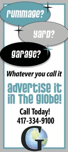 TO ENSURE THE BEST RESPONSE TO YOUR AD... Please make sure your ad is correct in the first issue in which it appears. The Branson Globe is responsible for one day’s charge of the space occupied by the error. If your ad is not correct, call us immediately to have it corrected.