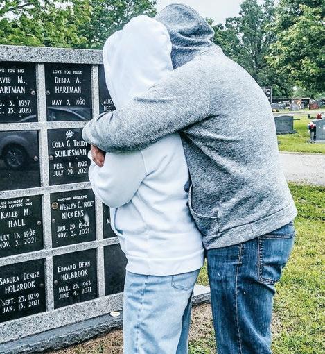 PAYING THEIR RESPECTS – A couple braved the rain on Memorial Day to pay their respects at the Ozarks Memorial Park Cemetery. Around the United States, men, women and children took time out over the holiday weekend to honor, remember and reflect on the sacrifices made by our fallen heroes. (Photo by K.D. Michaels)