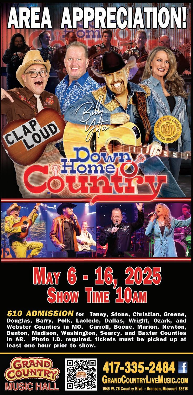 Branson show where the backdrop wasn’t a curtain but instead the beautiful and ancient peaks of the Ozarks. I’m thinking specifically of Silver Dollar City’s Echo Hollow and the Shepherd of the Hills Outdoor Theatre. So therefore, I’d like to put forth a proposal. If Los Angeles is known as Hollywood and Nashville carries the name Music City, wouldn’t it be fun to colloquially name the White River Hills that surround our wonderfully scenic town, the Music Mountains. I, for one, would buy the t-shirt and I think Grandma would, too.
