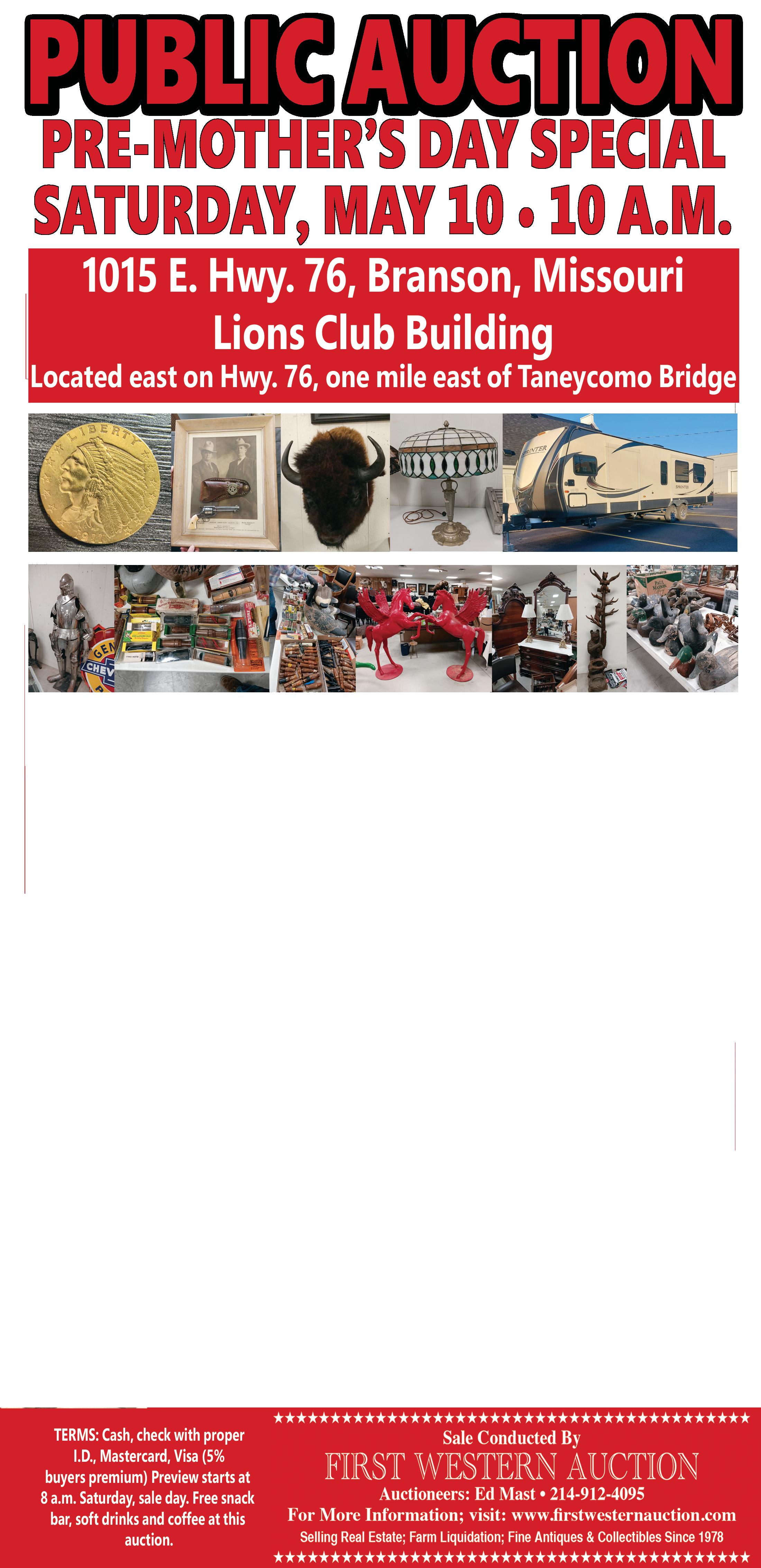 65 S. to Highway 86, left at stoplight, left on Thunderbird, right on Fruit Farm, 1 mile on left. May 16, 7 a.m. – 3 p.m.; May 17, 7 a.m. – 3 p.m.