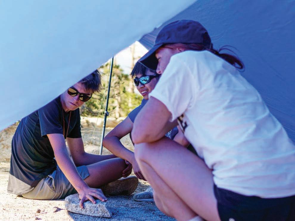 Thirteen backpackers trudge steadily up a trail beneath weathergrizzled conifers and flanked by walls of steeply sloping granite. As the sun creeps higher in the sky, the student leaders signal the group to stop – a water break, a few bites of an energy bar, a quick redistribution of gear to lighten someone’s pack – and then they continue their unrelenting ascent. As they walk, the dry air smells of pine and juniper, and a slight breeze offers welcome relief from the mid-August heat. It’s already been a long day’s journey, and it’s only 11 a.m.