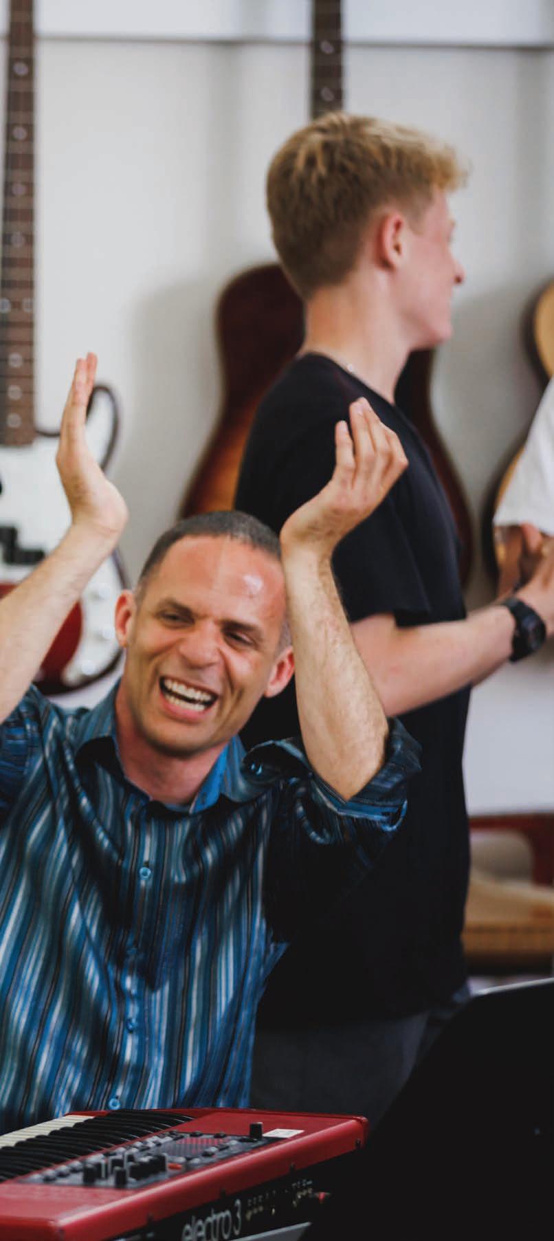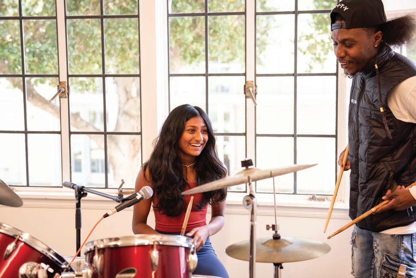 fully absorbed. Then he pulls off the headphones and smiles. “Man, that’s dope! Those transitions, you aced it.” The student beams like he’s just won a Grammy. Whatever guardrails he had up before are now flat on the pavement.