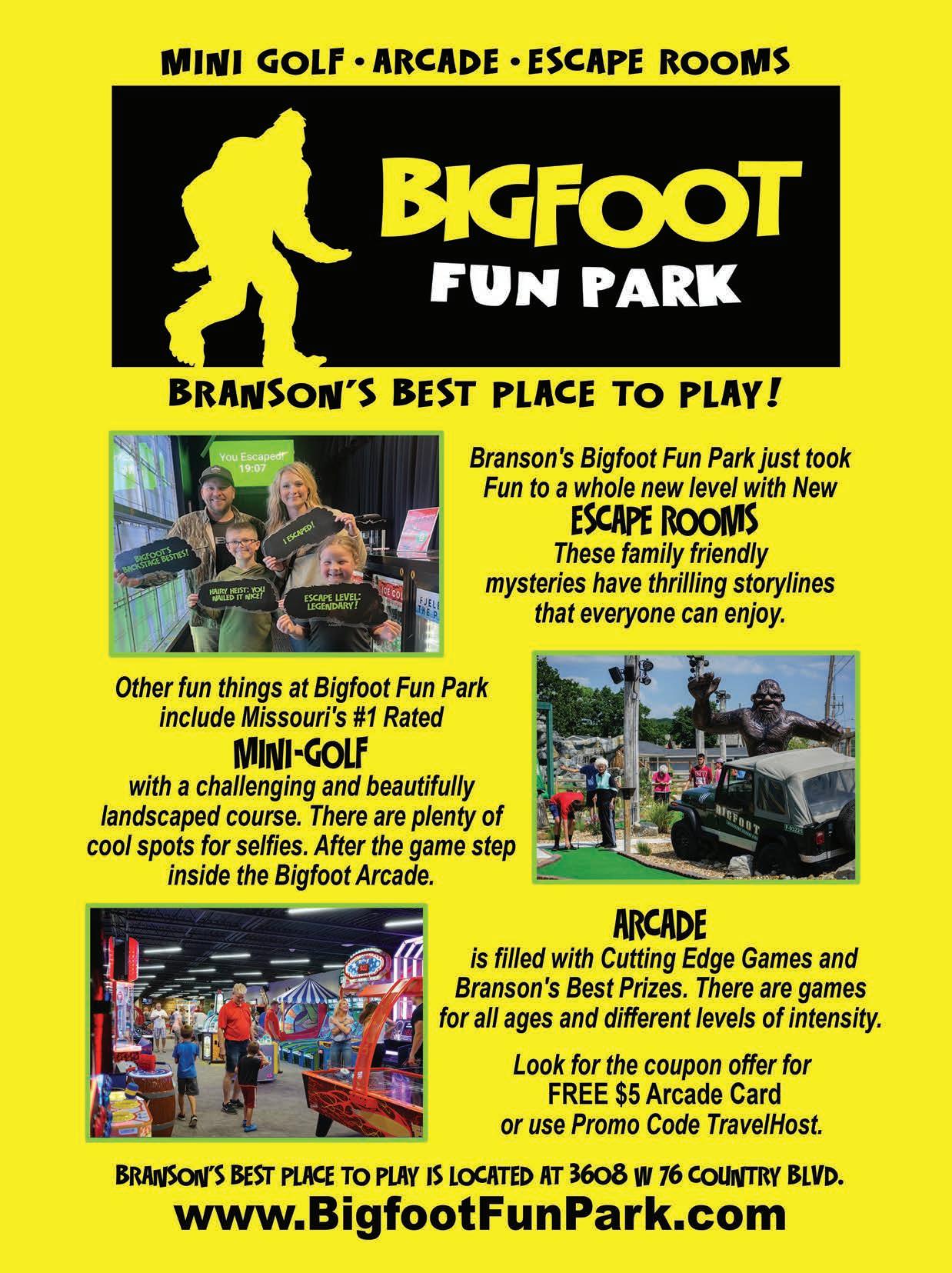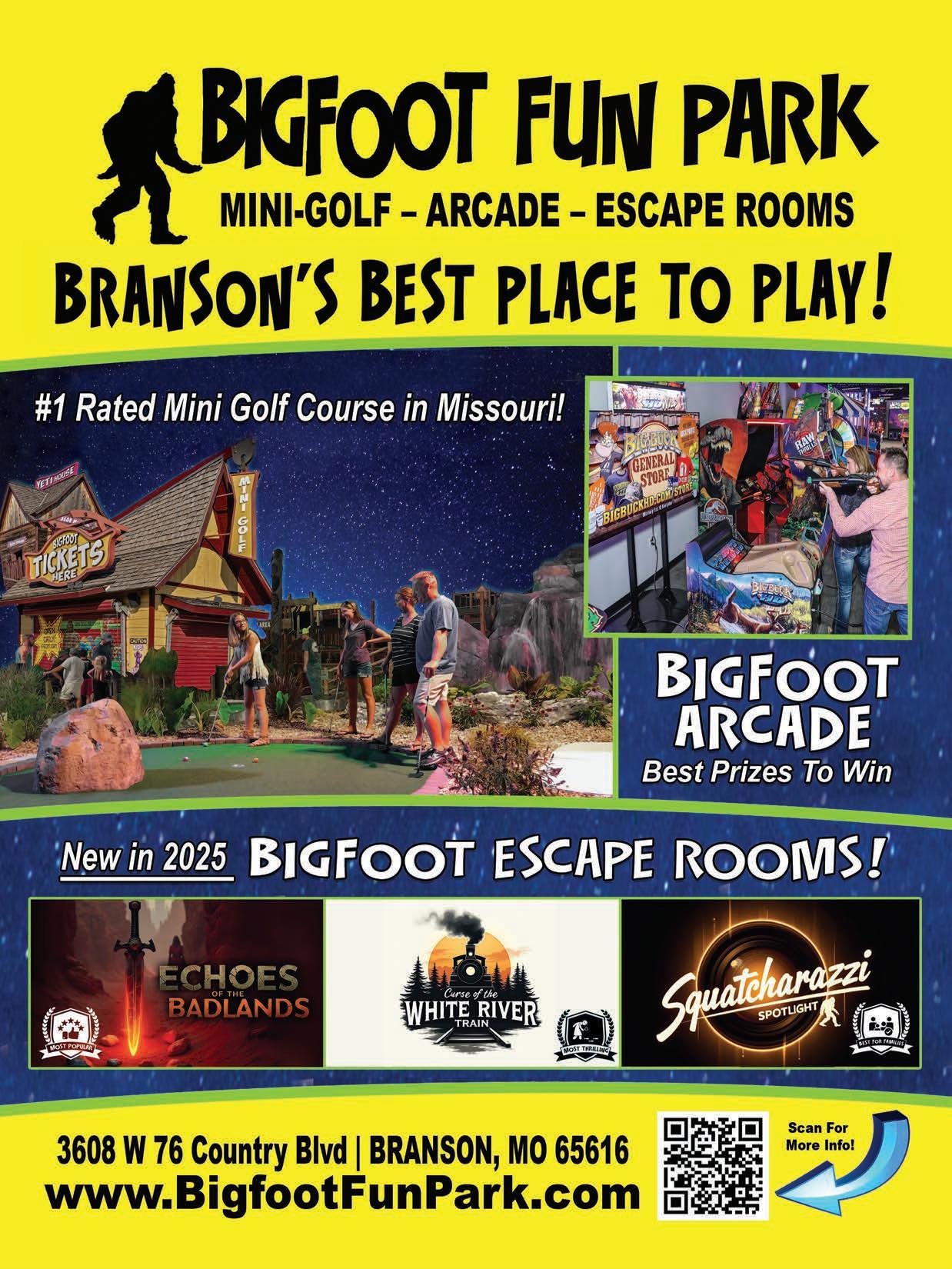 Bigfoot escape rooms and cutting-edge games for all ages like Skee Ball, Wizard of Oz and the World’s Largest PacMan! Best prizes in Branson! Located at 3608 Hwy 76. BigFootFunPark.com