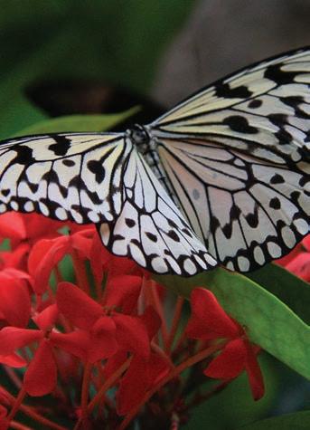 from exotic rainforests all over the world. The butterflies fly freely about the aviary, landing on your very own, hand-held nectar flower, giving you a personal interaction feeding the butterflies.