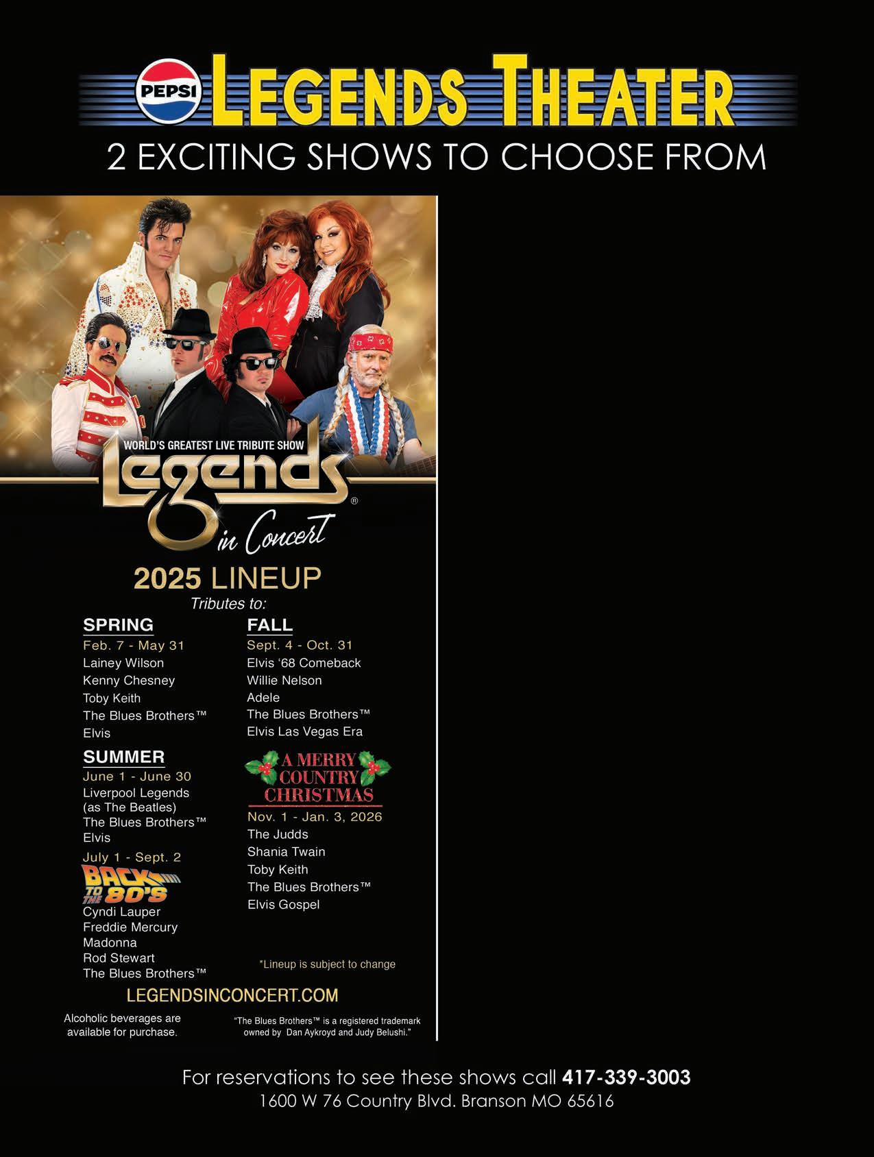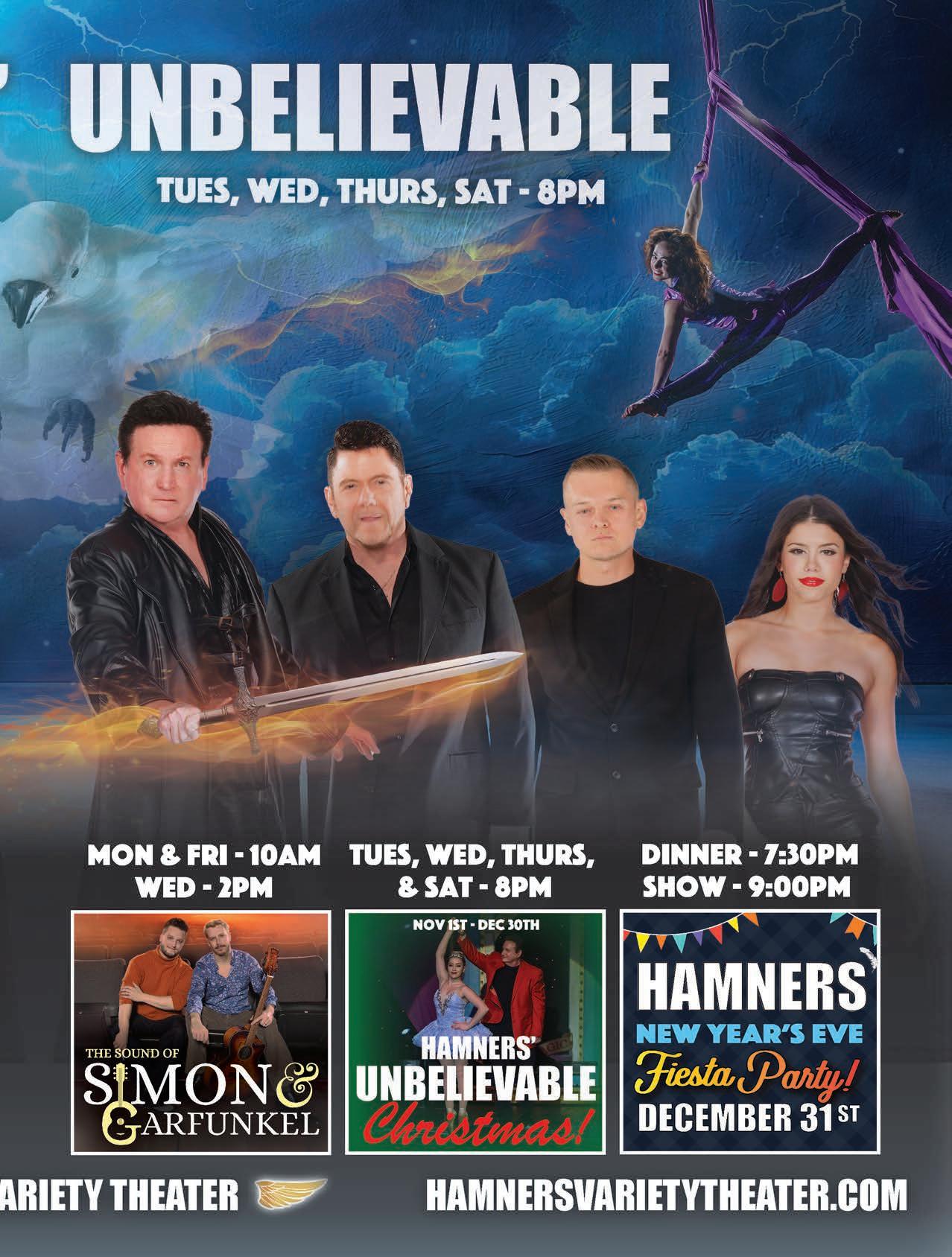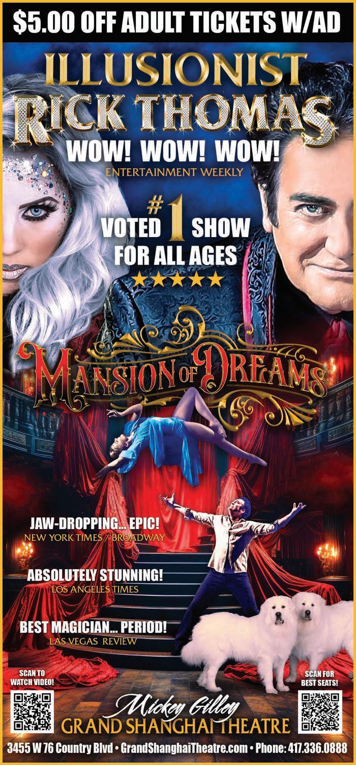Celebrate the season with the show that has been awarded “Best Christmas Show” an incredible 13 times! The Hughes Christmas Show runs from Nov 1 - January 7 with shows at 10 a.m., 2 & 8 p.m. The Hughes Brothers Theatre is located at 3425 West 76 Country Blvd. Call 800-422-0076 for schedule and reservations or visit hughes-brothers.com.