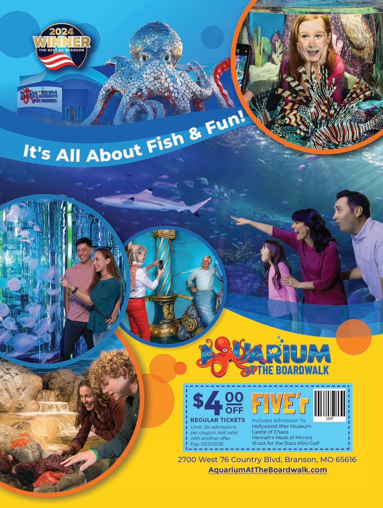 The Aquarium is located at Branson Boardwalk, 2700 W. 76 Country Blvd. Call 417335-3474 or visit aquariumattheboardwalk. com for tickets and more information.