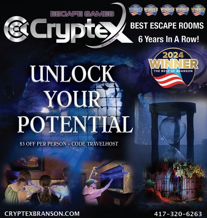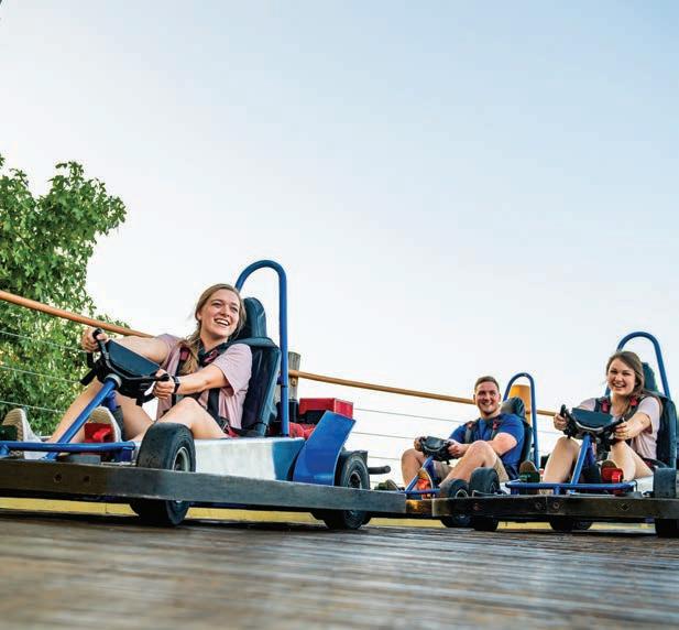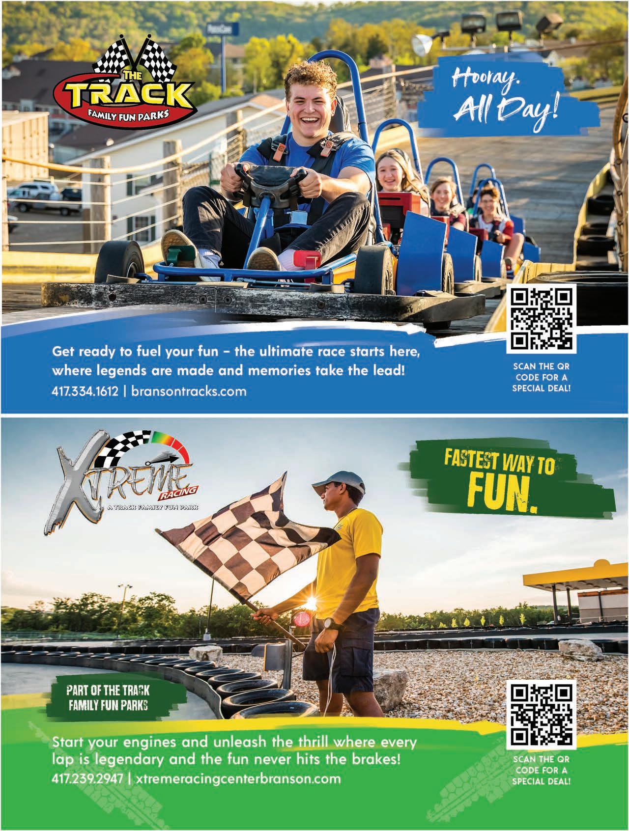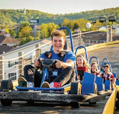 Xtreme Racing Center is a must-visit for adrenaline junkies and racing enthusiasts. Featuring world-class go-karts capable of reaching speeds up to 40 mph, this track offers a true test of skill and strategy. The state-of-theart, 3,500-foot raceway is designed to provide a professional karting experience, complete with hairpin turns and long straightaways. Whether you’re competing against friends or testing your solo skills, Xtreme Racing promises edge-of-your-seat excitement. Plus, the facility offers two levels of karts for adults and juniors, ensuring that everyone can get in on the action. Just minutes away, T he Track Family Fun Parks offer a variety of attractions for every kind of adventurer. With multiple locations throughout Branson, The Track is renowned for its iconic multi-level go-kart tracks, including the legendary Heavy Metal High Rise and Wild Woody. But the fun doesn’t stop there—visitors can enjoy bumper boats, laser tag, mini golf, and a classic arcade filled with nostalgic games and new favorites. For the thrill-seekers, the Skycoaster and the Branson Ferris Wheel provide unforgettable views and an exhilarating rush.