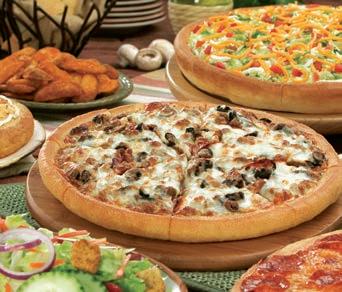 The All-Meat Combo features beef, pepperoni, sausage, ham, Italian sausage, bacon bits and mozzarella cheese and the Taco Pie is piled high with beef, onions, lettuce, tomatoes, taco sauce and cheddar & mozzarella cheeses. Order your pizza with the thick & chewy original crust, the buttery, pan-style golden crust, or the light & crispy thin.