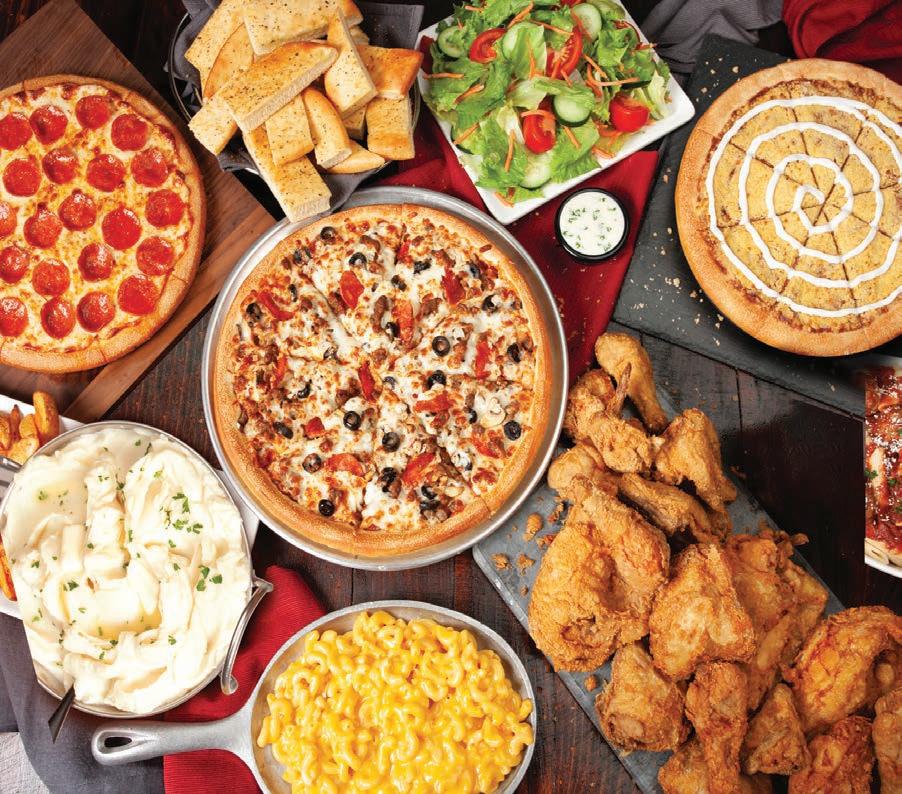 The all-you-can-eat, lunch and dinner buffets offer a wide variety of Godfather’s pizzas so you don’t have to decide! You’ll find a nice selection of freshly baked Godfather’s famous pizzas along with their delicious broasted chicken, mashed potatoes & gravy, breadsticks, vegetables, pasta, a large salad bar loaded with fresh fixings, and yummy dessert pizzas.