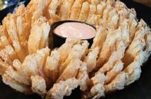 rolls they can catch and eat. Favorite appetizers include the Loaded Cheese Fries topped with bacon, cheese and green onions, and the Onion Blossom, a huge, breaded and deep-fried onion served with a tasty dipping sauce.