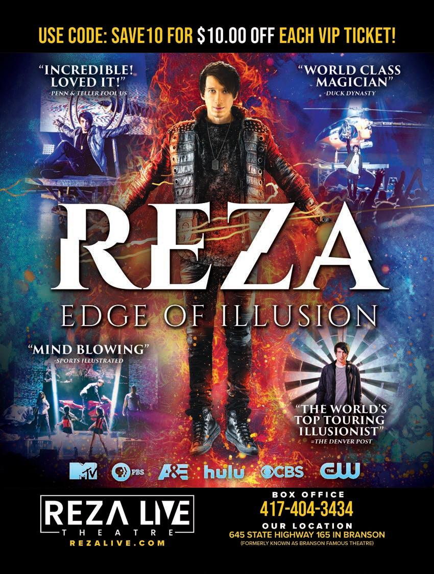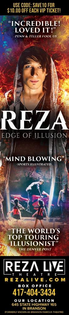 Escape into a world where the impossible becomes reality! Dustin Tavella Presents “Now I See” will be performing at the Reza Live Theatre, with shows scheduled from March through December. Located at 645 State Hwy 165. Call 417-220-3737 or dustintavella.com/branson for show schedule and reservations.