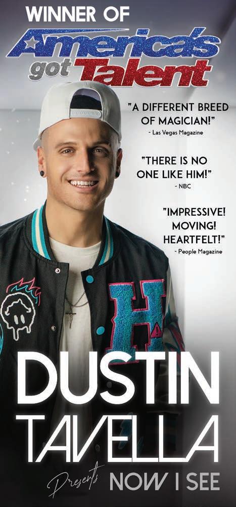 Dustin’s triumphant appearances on “America’s Got Talent” not only impressed an all-star panel of judges but captivated the nationwide audience. After a successful stint in Las Vegas, Tavella’s newest, highly entertaining creation, “Now I See,” promises to surpass anything he’s done on television or on the Las Vegas stage, leaving audience members filled with excitement, inspiration, wonder and amazement.